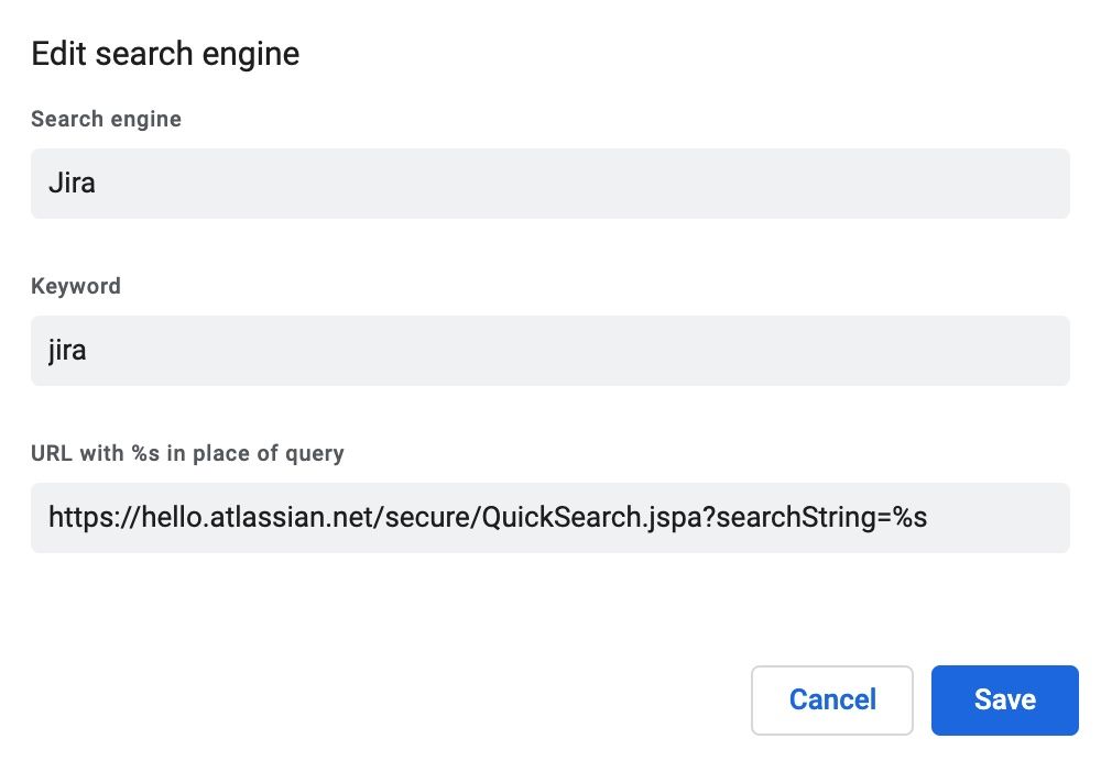 Here's how you can add the ability to search and directly access Jira tickets from within your browser's URL bar.